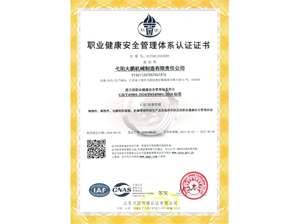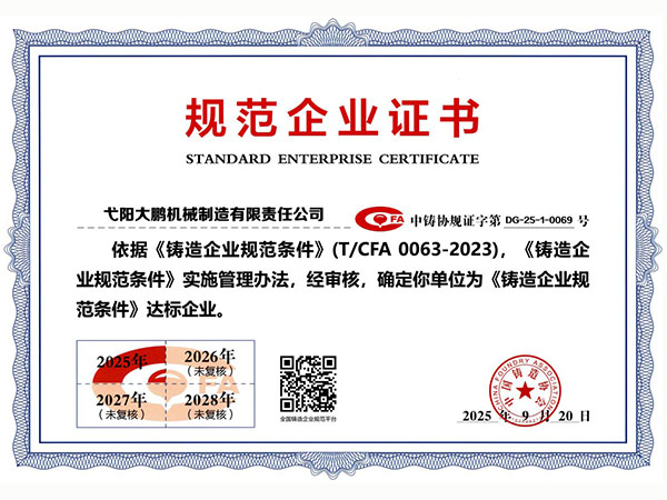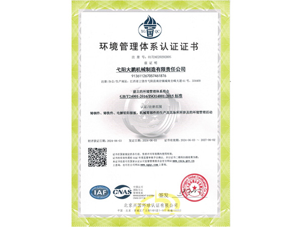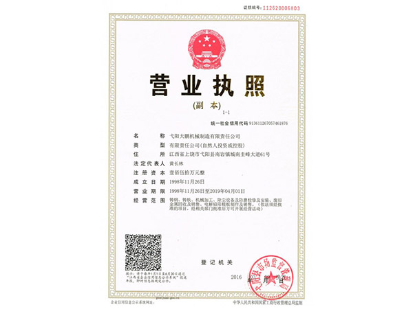 • 09-28弋陽(yáng)大鵬機(jī)械制造有限責(zé)任公司成功取得規(guī)范